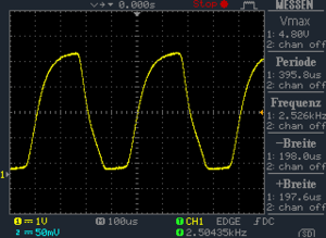 Um die Periodendauer zu messen verwende ich den ICP1 (Input Capture Pin) eines Atmega8 der bei steigender Flanke den Timer1 ausliest und in das ICR1 Register schreibt. Läuft der Mikrocontroller auf 8Mhz und wir stellen den Vorteiler des Timers auf 8 so bekommen wir die Periodendauer in µs als Wert.