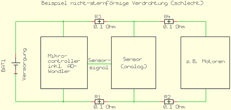 Beispiel für eine nicht-sternförmige Verdrahtung (schlecht)