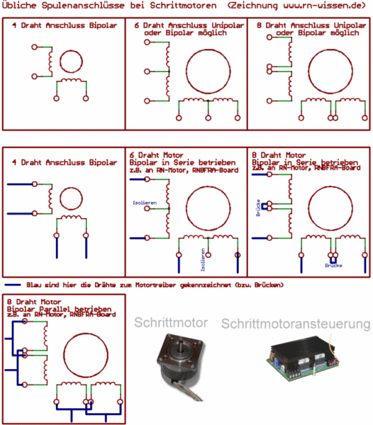 Verschiedene Anschlussarten bei Schrittmotoren