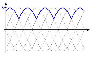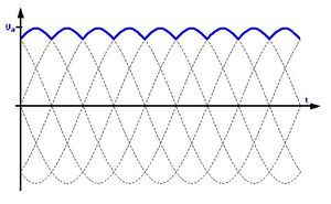 Wellenform der Ausgangsspannung bei Sechspuls-Drehstromgleichrichtung