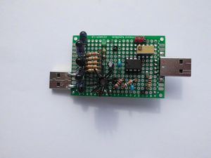 Die beiden USB-Stecker sind von der Funktion her nicht erforderlich, bei verschiedenen Testaufbauten haben sie sich aber auch als mechanische Halterungen für die bake und für den Test für den Abstand der IR-Strahlungsebene vom Boden bestens bewährt.