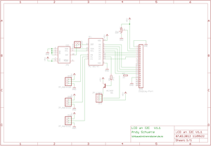 Für die Ansteuerung eines LCDs per I2C gibt ein paar Projekte im Netz. Ich habe jedoch die Huckepackmontage des Displays vermisst. Im Artikel LCD an RN-Control gibt es sie, jedoch nicht für den Anschluss an I2C. Wegen des Platinenformates des Displays von 90mm x 60mm entspricht dies keinem RN-Platinenformat. Für die Huckepackmontage auf RN-Miniplatinen sind jedoch in diesem Projekt die Bohrungen vorhanden. Das Projekt wurde in der Version 1.0 aufgebaut und ist mit einer zusätzlichen Durchkontaktierung funktionsfähig (siehe Versionen). Mit der Version 1.1 ist es möglich per I2C die Displaybeleuchtung an-/auszuschalten.
