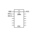 Desweiteren existiert ein MCLR-Pin, der beim PIC einen Neustart (=Reset) auslösen kann (Low-Pegel). Diesen Pin sollte man, wenn er in "__config" aktiviert ist, über einen Widerstand (pull-up) an Versorgungsspannung legen, damit der PIC anfängt, sein Programm abzuarbeiten. Der Anschluss wird auch für die Programmierung benötigt. Beim sog. High-Voltage-Programming wird MCLR auf ca. 12-14 Volt gelegt, um den PIC in den Programmiermodus zu schalten. Bei manchen PICs kann dieser Anschluss auch als normalen I/O Pin eingestellt werden. In dem Fall, bei ICSP Benutzung, soll noch eine Diode zwischen den pull-up und Versorgungsspannung angeschlossen werden, um die an PIC angeschlossene Hardware während der Programmierung vom Auftreten der Vpp an Vcc zu schützen und die Vpp nicht zu belasten.