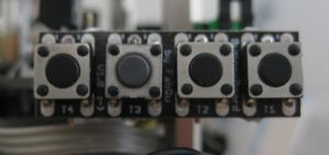 Das Problem: Leider sind die Taster des Tasterboards nur einzeln abzufragen, da sie sich gegenseitig nach unten bedingen. Das heißt: Wer Taster 1 und drei drückt, wird nur Taster 1 registrieren.