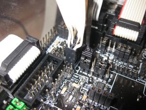 - Am vorderen linken Rand kann man bis zu 10 Pins anbringen. Belegung siehe Platinenaufdruck