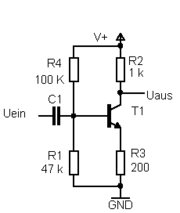 20:15, 18. Okt. 2008 FotodiodenVerst.png (Datei) 786 Bytes Einfacher Transistorverstärker für Fotodiode. z.B. für Lichtschranke. 1
