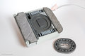 Winbot ist fast quadratisch und mit ca. 24 cm relativ kompakt. Der Aufbau wirkt qualitativ sehr gut und stabil. Für die Fortbewegung verfügt er auf der Unterseite über zwei stabile Gummiketten. Mit diesen Ketten bewegt er sich sicher auf der Glasscheibe vor und zurück, wenn auch mit einer relativ langsamen Geschwindigkeit. Damit er der Schwerkraft trotzen kann und nicht herunterfällt verfügt er über eine Vakuumpumpe. Er saugt sich also an der Scheibe fest. Das ganz funktioniert beeindruckend gut, es gab im Test keine Situation wo er unkontrolliert gerutscht oder gar heruntergefallen wäre. Dennoch liefert der Hersteller ein Gummiseil mit, mit welchem das Netzteilkabel (das fest mit dem Roboter verbunden ist) zusätzlich an einem Saugknopf befestigt werden kann. Der Hersteller empfiehlt die Verwendung dieser Sicherheitsleine immer wenn die Außenseite geputzt wird oder sich der Roboter in größeren Höhen bewegen muss. Etwas sperrig wirkte das Netzkabel, zumal es sehr dick ist und über recht dicke Stecker verfügte. Nutzt man die mitgelieferte Verlängerung muss man aufpassen das sich die Stecker nirgends Verhaken können, da der Roboter das Kabel ja immer mitzieht. Hier würde man sich ein dünneres Kabel wünschen.